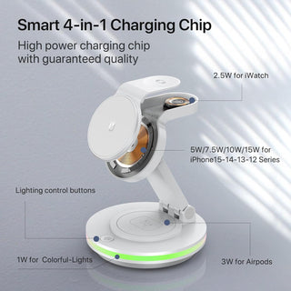 Foldable 4-in-1 Magnetic Wireless Charging Station for iPhone, Apple Watch & AirPods (White)