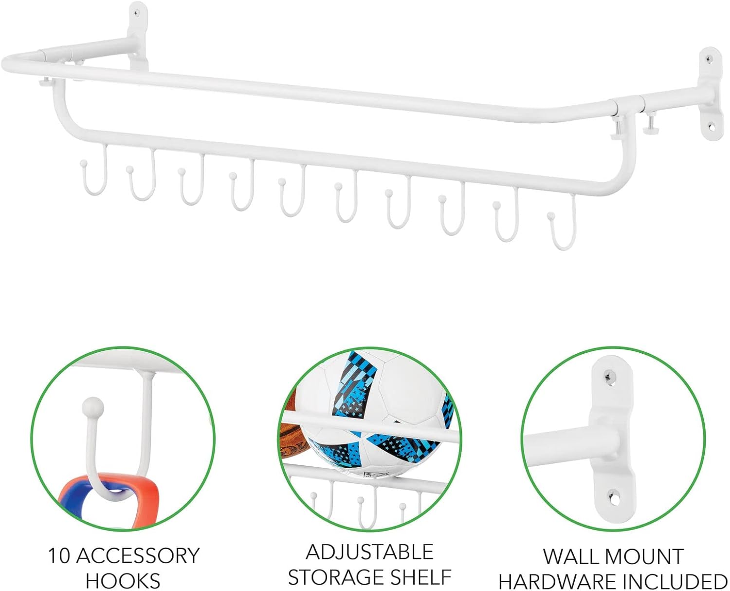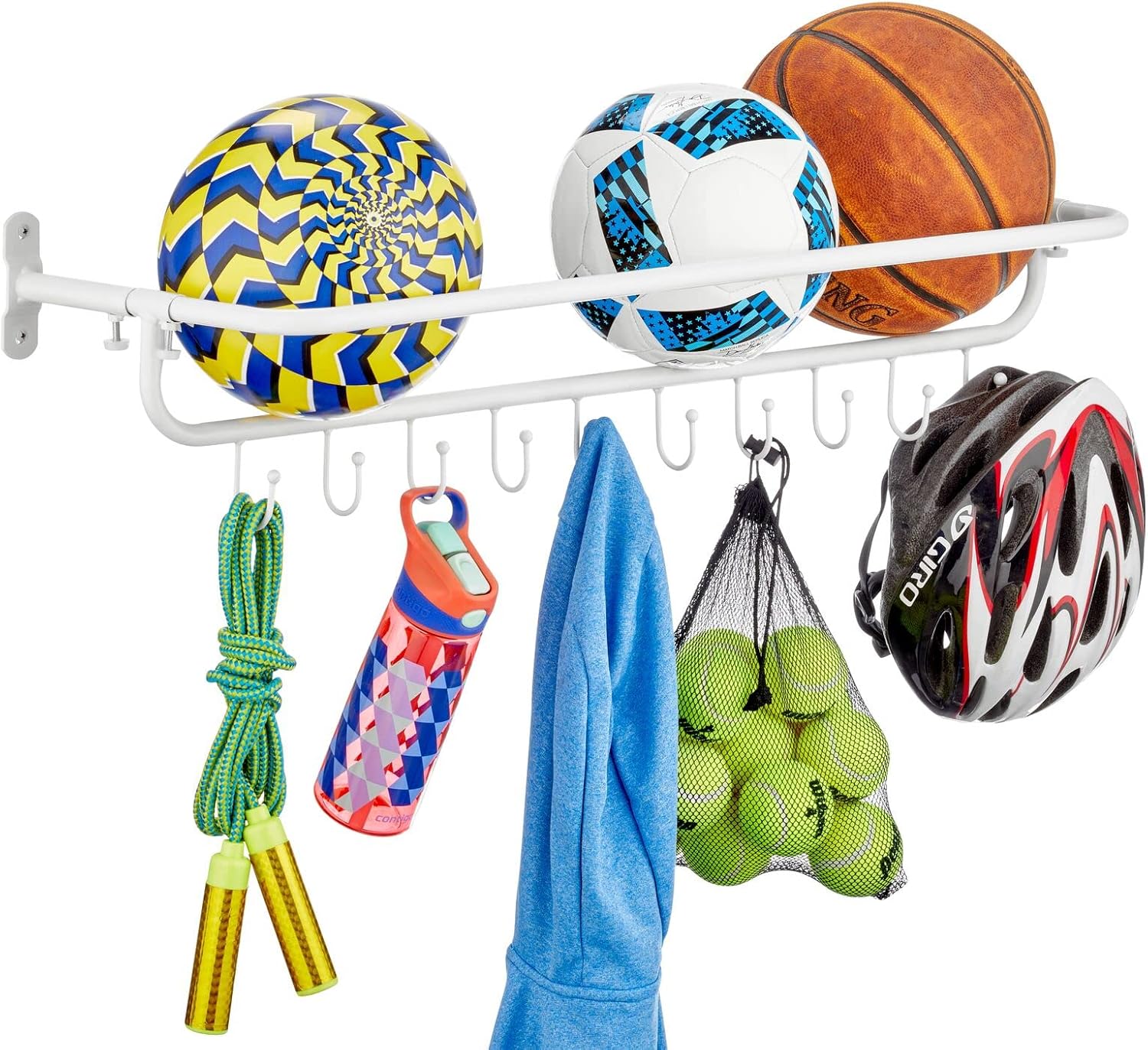 - 10 Sturdy Hooks: Perfect for hanging gym equipment, tools, or other items, keeping them organized and within reach.