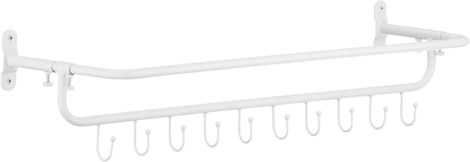 Designed with durable materials, this rack features ten sturdy hooks that hold a variety of items securely. Its compact, wall-mounted design saves space and keeps essentials easily accessible, making it ideal for garages, gyms, or utility rooms.