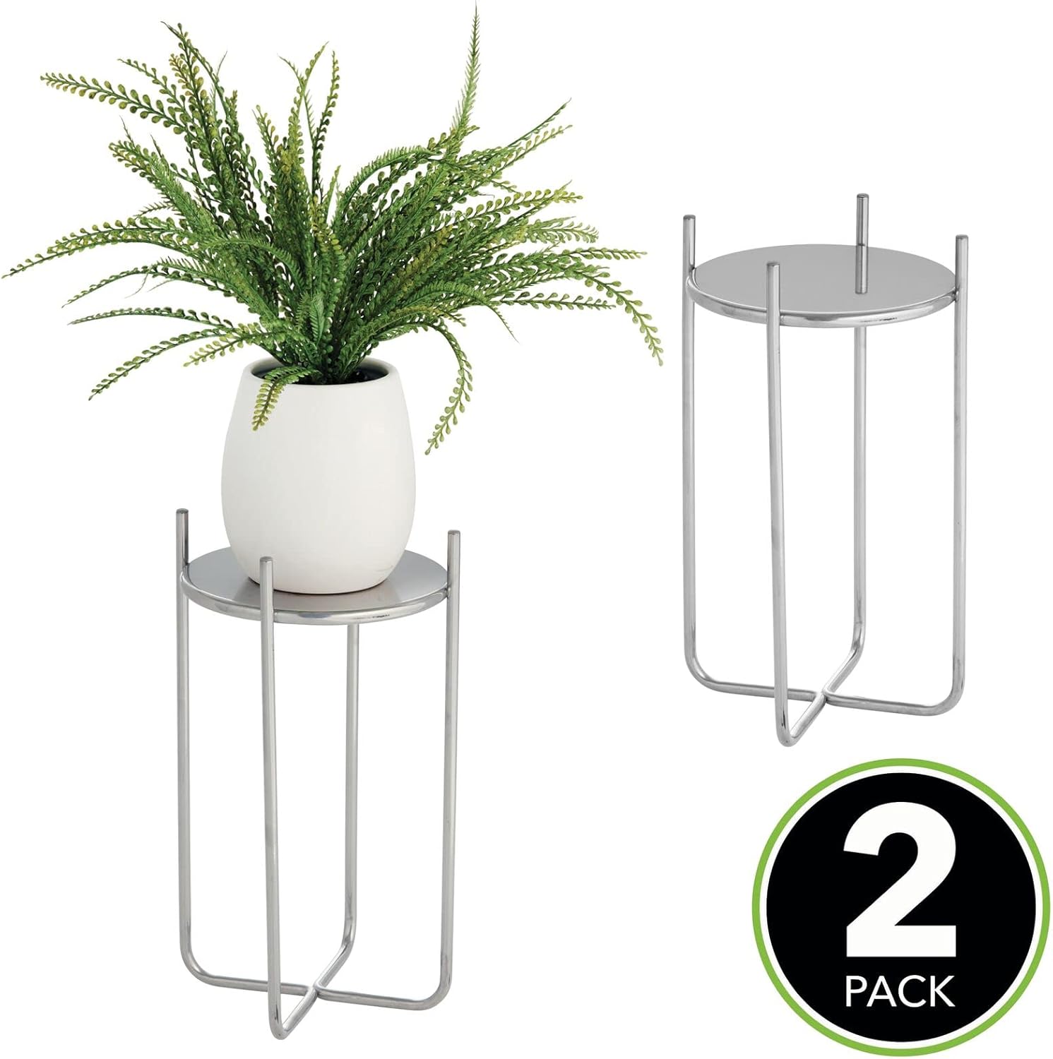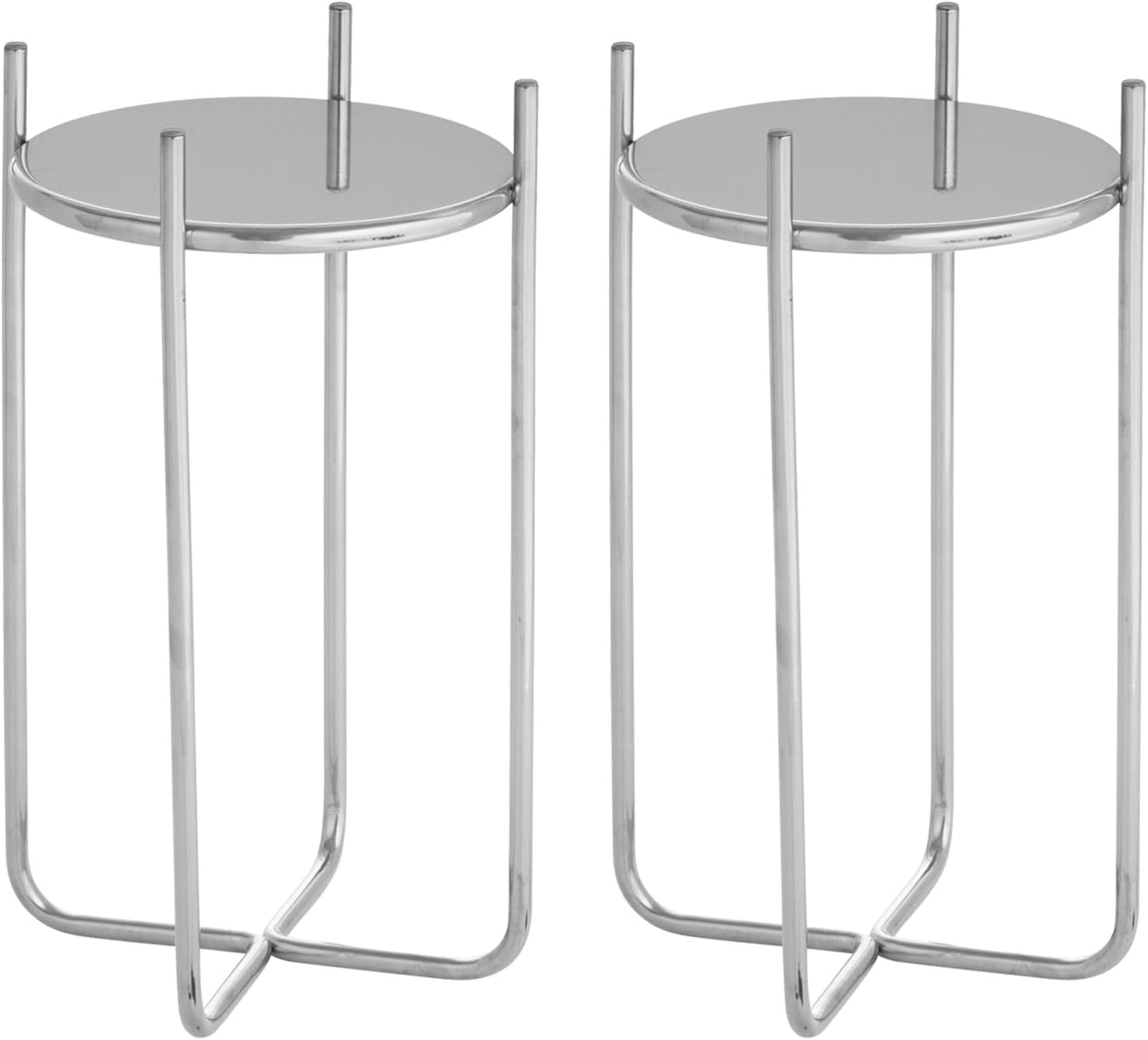 Showcase your greenery in style with this 2 Pack of 15"" Plant Stands in Chrome. These sleek and durable stands provide a modern and elevated look to complement any home or garden decor.