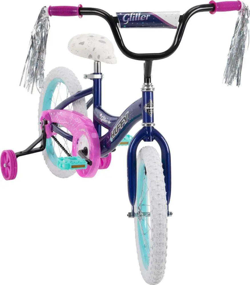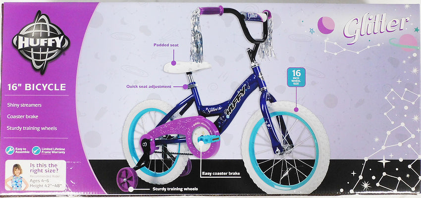 Let your little one sparkle and ride in style with the Huffy Glitter 16" Bike. Designed for girls aged 4-6 and tailored for riders between 42" to 48" in height, this bike combines safety and fun. The vibrant design, complete with glittery accents, ensures an exciting ride while sturdy construction and easy-to-use features provide confidence and comfort as they learn and grow.