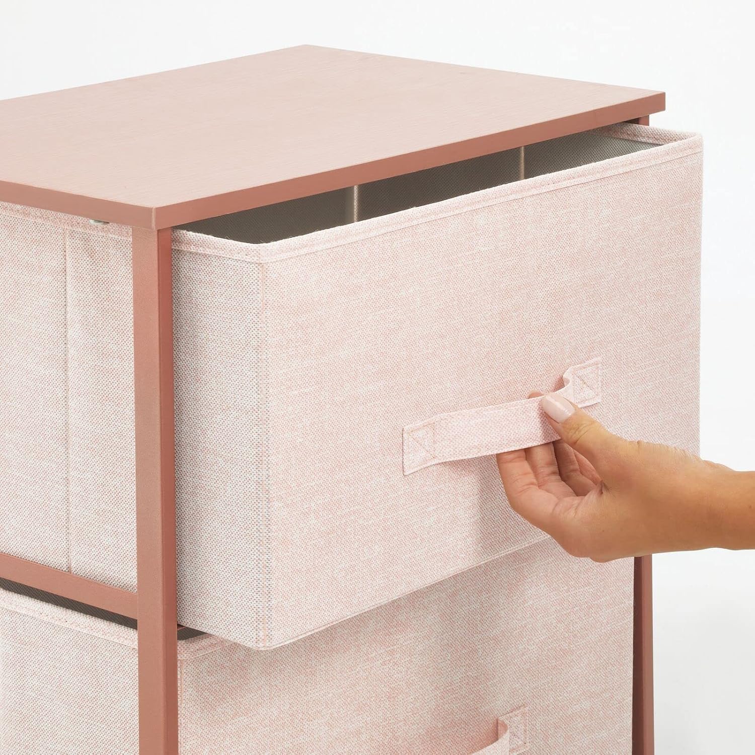 • Add a touch of elegance to your organization with the 2-Drawer Storage Unit in Light Pink and Rose Gold.