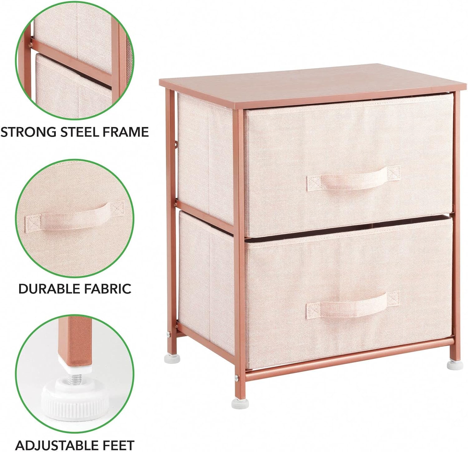 2-Drawer Compact Storage Unit - Light Pink/Rose Gold