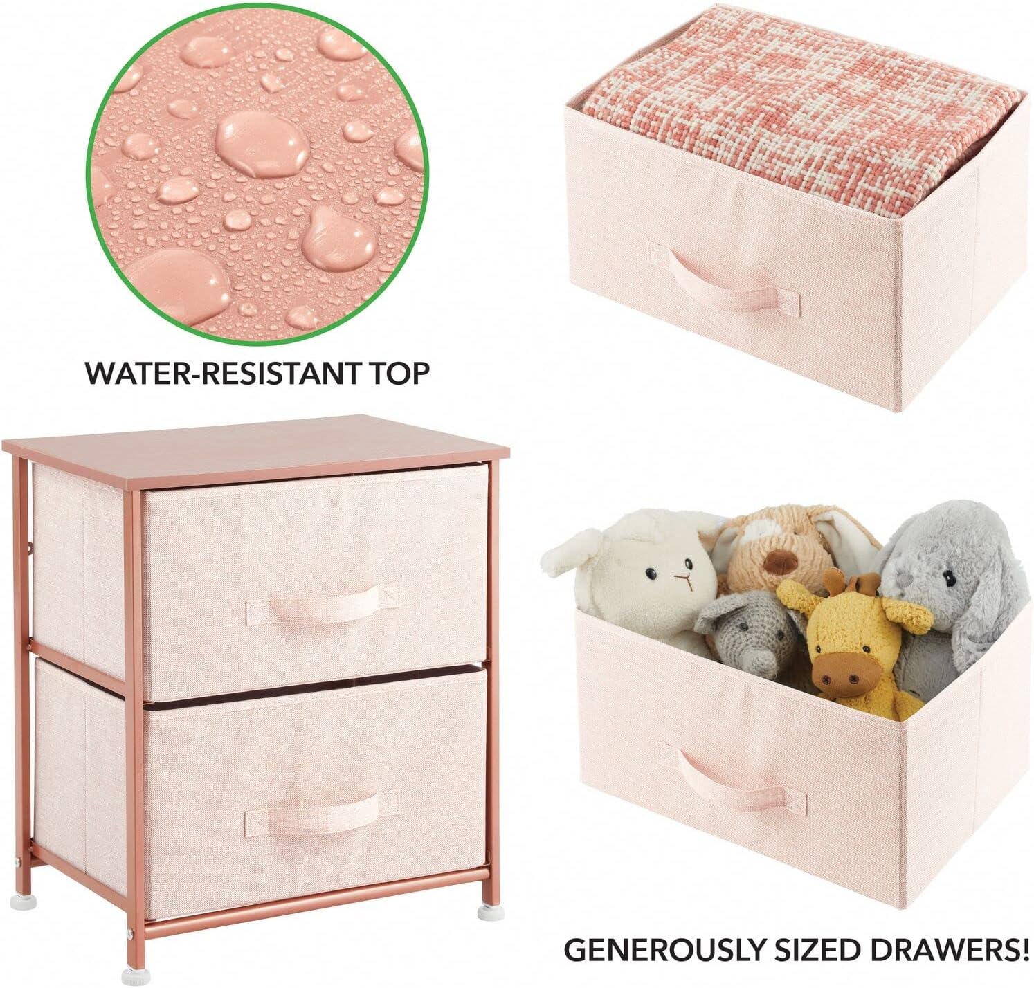 Add a touch of elegance to your organization with the 2-Drawer Storage Unit in Light Pink and Rose Gold.