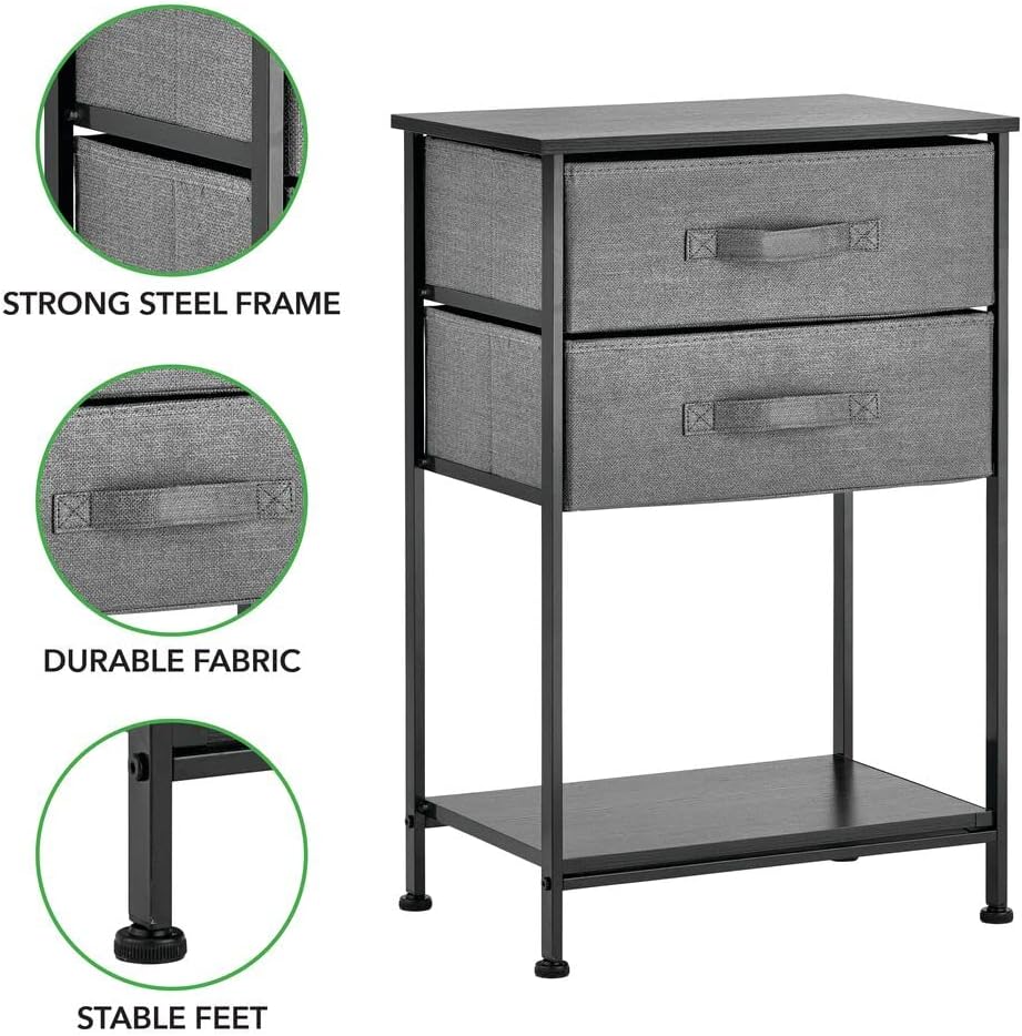 Enhance your bedroom decor with the 2 Drawer Night Stand with Shelf in a sleek charcoal finish.