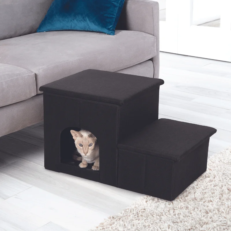 Provide your pet with a functional and stylish piece of furniture with the Intelligent Living 2-in-1 Pet Steps & House. This versatile product serves as both a set of pet steps and a cozy hideaway for your furry companion. With its sturdy construction and sleek black design, it blends seamlessly with your home decor. Give your pet the convenience of steps to access higher surfaces while offering them a comfortable retreat.