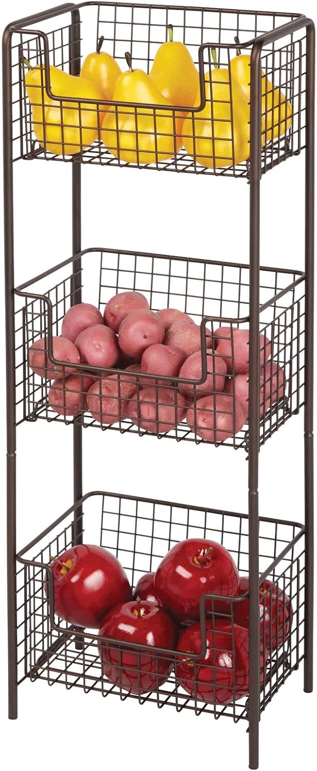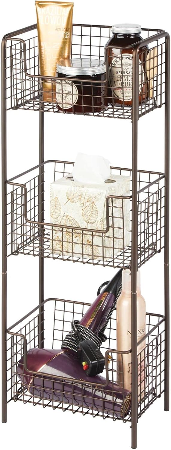 Featuring a bronze finish and three practical baskets, this unit is perfect for storing a variety of items in any room of your home, from bathrooms and kitchens to living rooms and entryways.