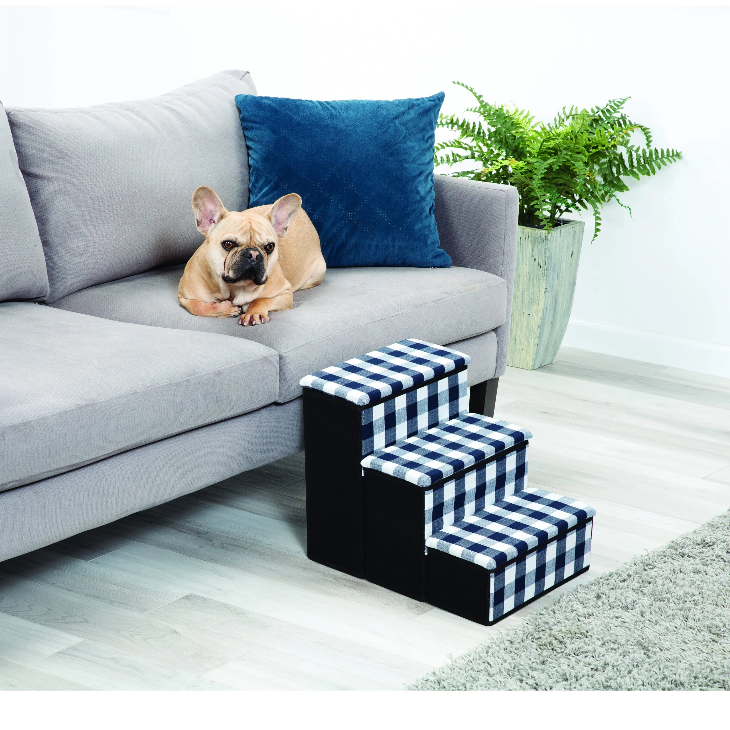• Now you can keep all your pet’s toys stored out of sight, all while giving your pet some much-needed stairs to help them get onto the couch or bed. 3 Tier Pet Steps with Storage holds a lot of toys or treats and provides easy steps for your animal to join you for cuddles.