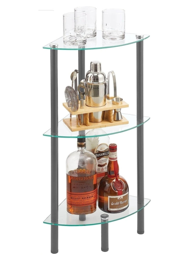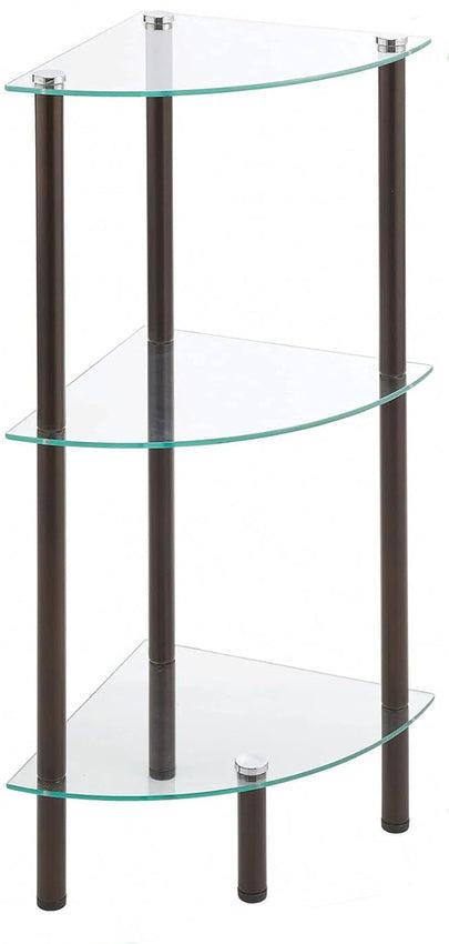 Maximize corner space in any room with this 2-Pack of 3-Tier Glass and Metal Corner Shelves.