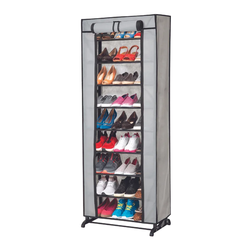 Keep your shoe collection neatly organized with the Intelligent Living 30 Pair Covered Shoe Organizer Rack. This spacious rack provides ample storage for up to 30 pairs of shoes, keeping them protected from dust and damage. The covered design with zippered closure ensures a clean and clutter-free look, while the sturdy construction guarantees durability. Say goodbye to shoe chaos and hello to an organized and tidy closet.