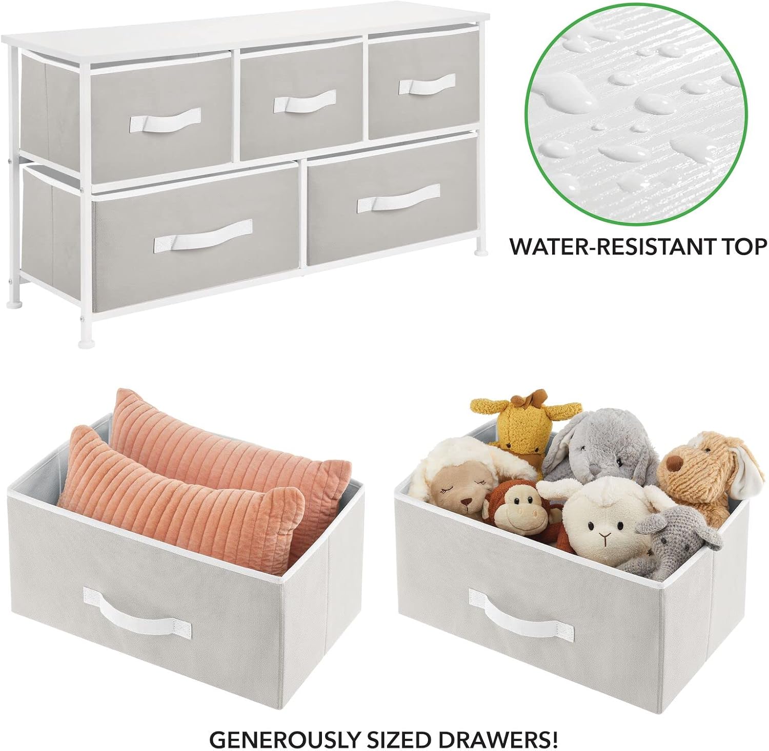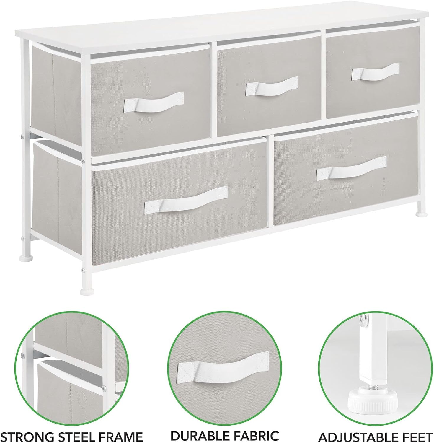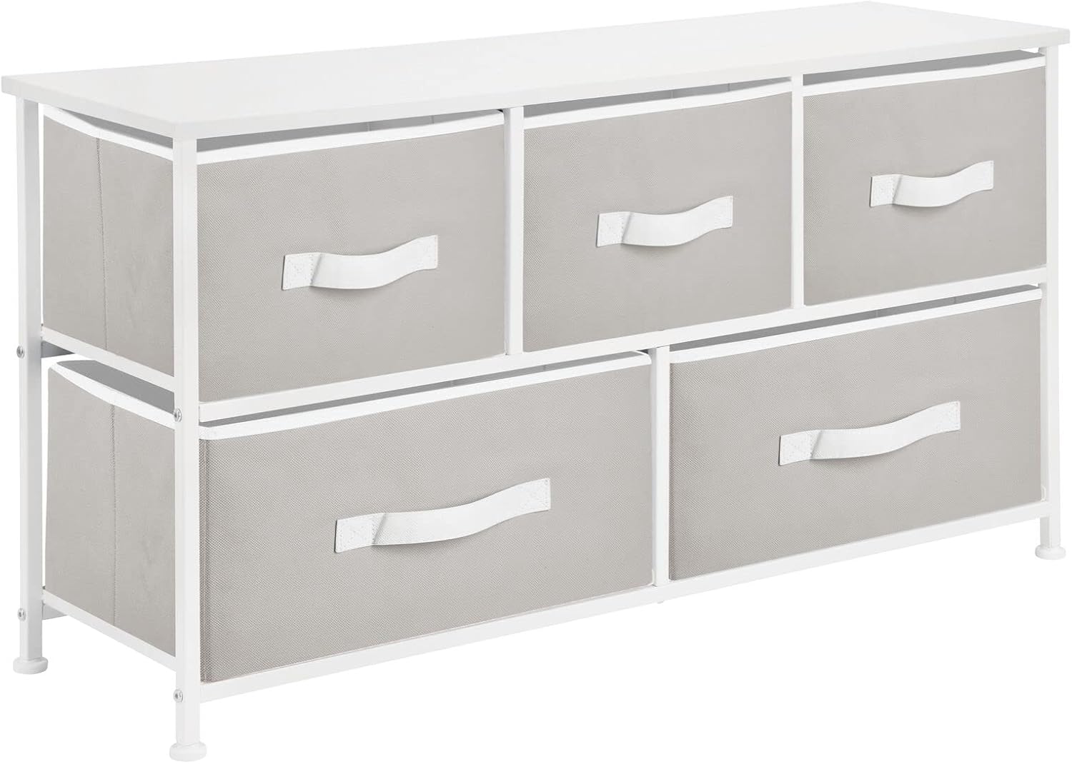 With five spacious drawers, it offers ample storage for clothing, accessories, or household items while maintaining a compact footprint perfect for bedrooms, living rooms, or offices.