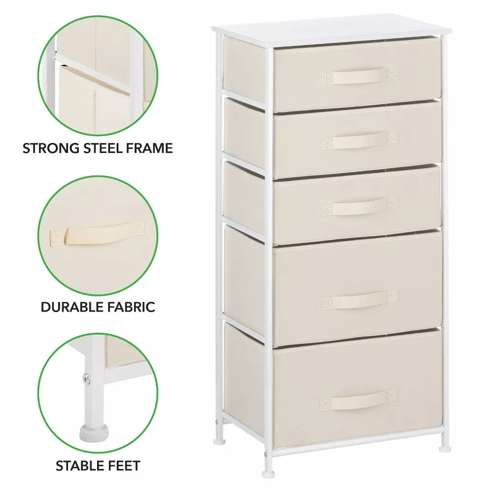 - Ample Storage: Features five spacious drawers for organizing clothing, accessories, office supplies, and more.
