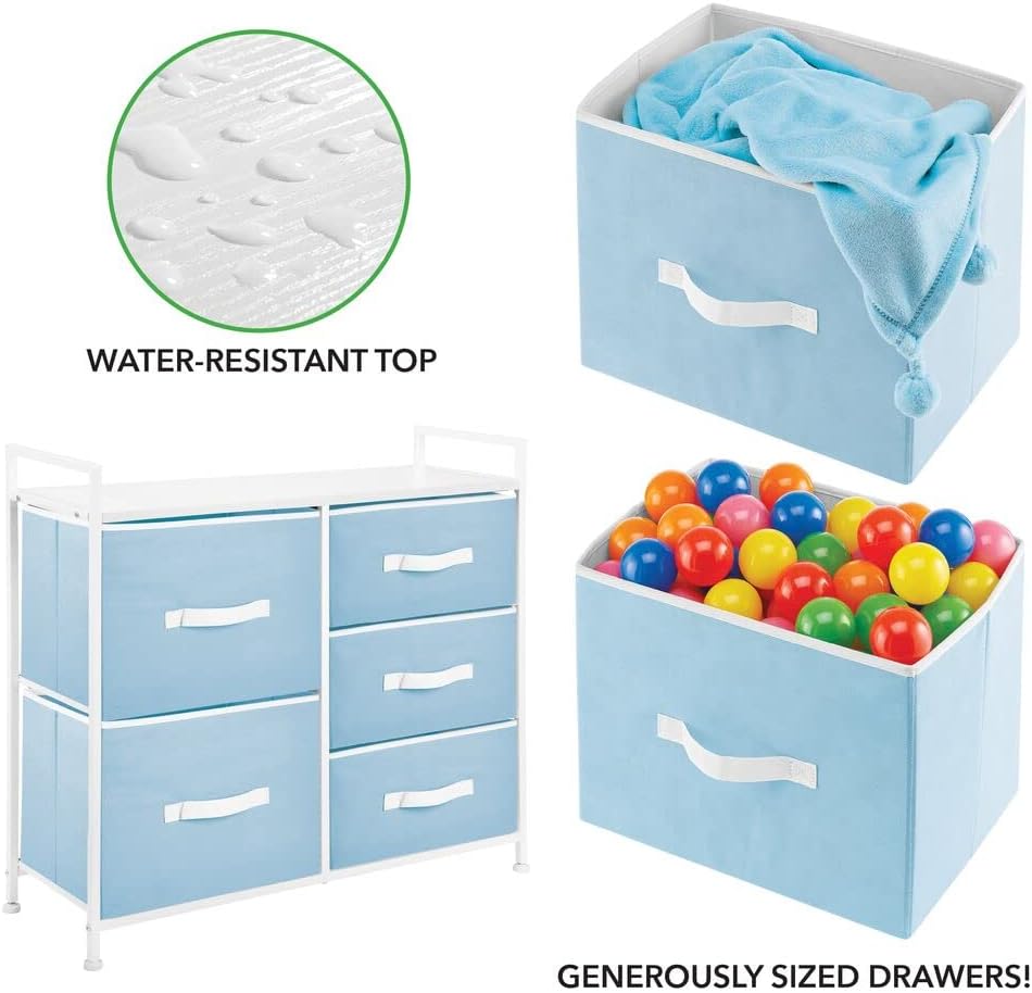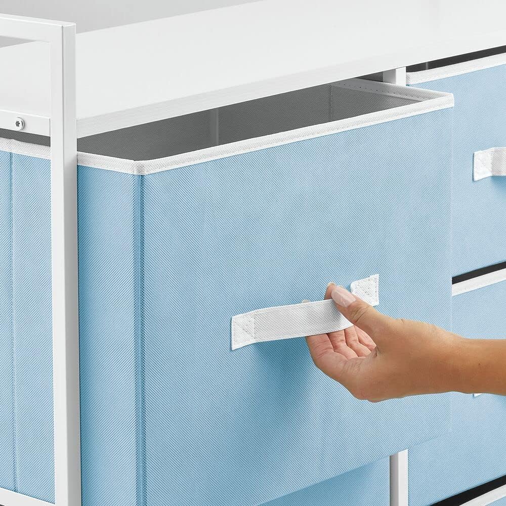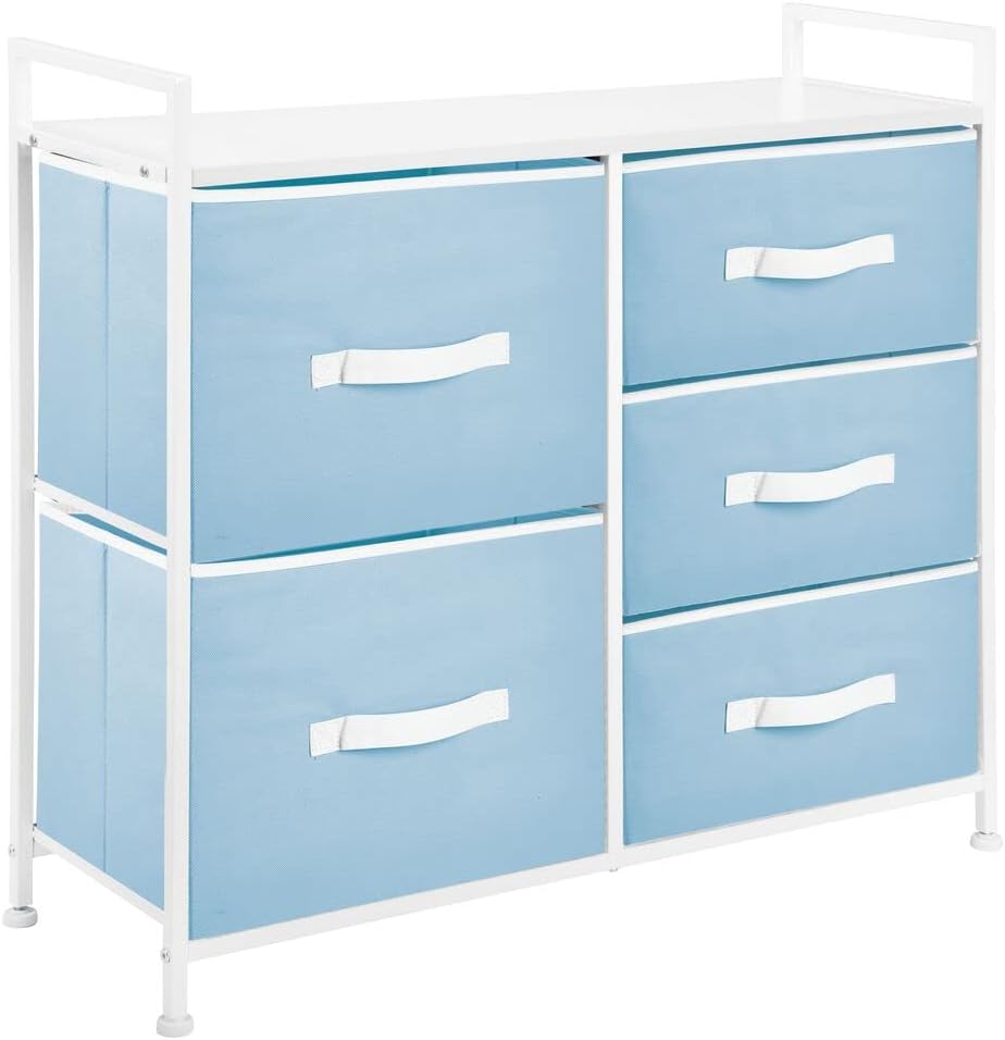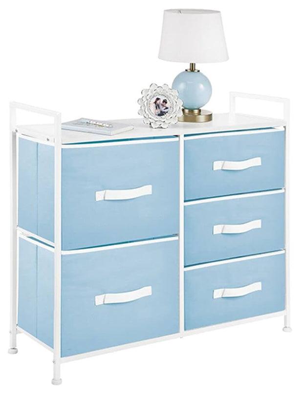 Add a stylish and functional touch to your space with the 5-Drawer Tall Storage Unit in Carolina Blue/White. Perfect for organizing and decluttering, this compact storage unit features five lightweight fabric drawers in a calming Carolina blue hue, paired with a sturdy white metal frame. Ideal for bedrooms, closets, or entryways, this unit provides practical storage while complementing your décor.