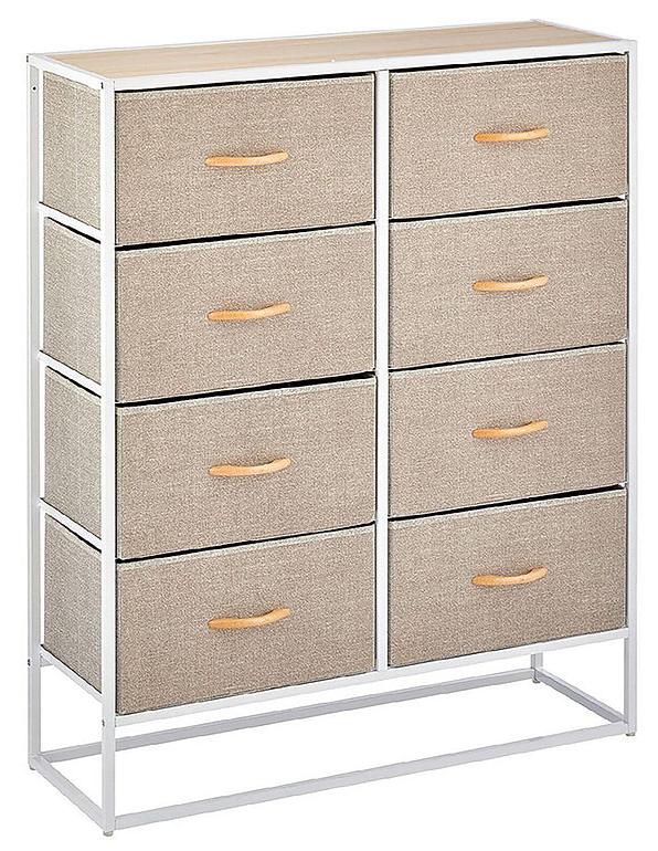 Elevate your organization game with the 8-Drawer Storage Unit in Linen/White. This stylish and functional unit combines lightweight fabric drawers with a sturdy metal frame, providing ample storage for clothes, accessories, toys, or household essentials. Its sleek design and neutral tones make it a versatile addition to any bedroom, closet, or living space.
