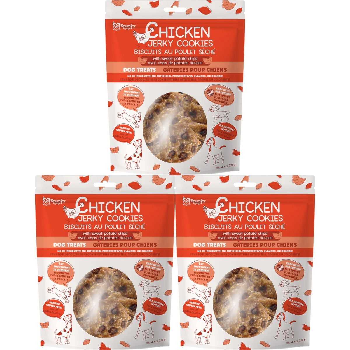 Give your pup a delicious and nutritious treat with Chicken Jerky Cookies with Sweet Potato Chips (6 oz)! Made with real chicken and wholesome sweet potatoes, these crispy, protein-packed cookies offer a savory and slightly sweet flavor that dogs love. Perfect for training, rewarding, or everyday snacking, these treats provide a natural source of protein, fiber, and essential nutrients to keep your furry friend happy and healthy. Features & Benefits: - Made with Real Chicken & Sweet Potatoes: A high-protein, nutrient-rich combination for a tasty and healthy snack.