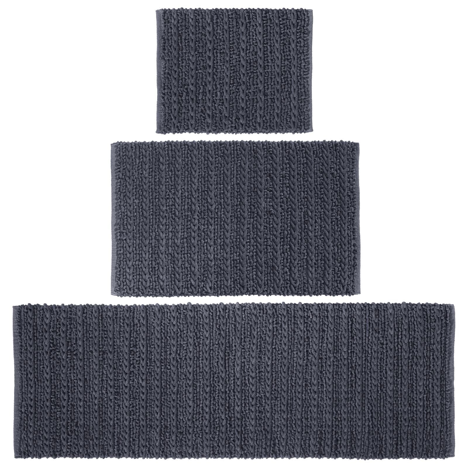 Add a touch of plush comfort to your home with this Chunky 3-Piece Rug Combo in Navy. Featuring three sizes—long, standard, and short—this versatile set is perfect for creating a coordinated look across various spaces. The chunky texture provides a cozy, stylish feel underfoot, while the durable design ensures long-lasting use. Features & Benefits: - Complete Set: Includes three rugs in varying sizes to suit multiple areas: 60" x 21", 34" x 21", and 17" x 21".