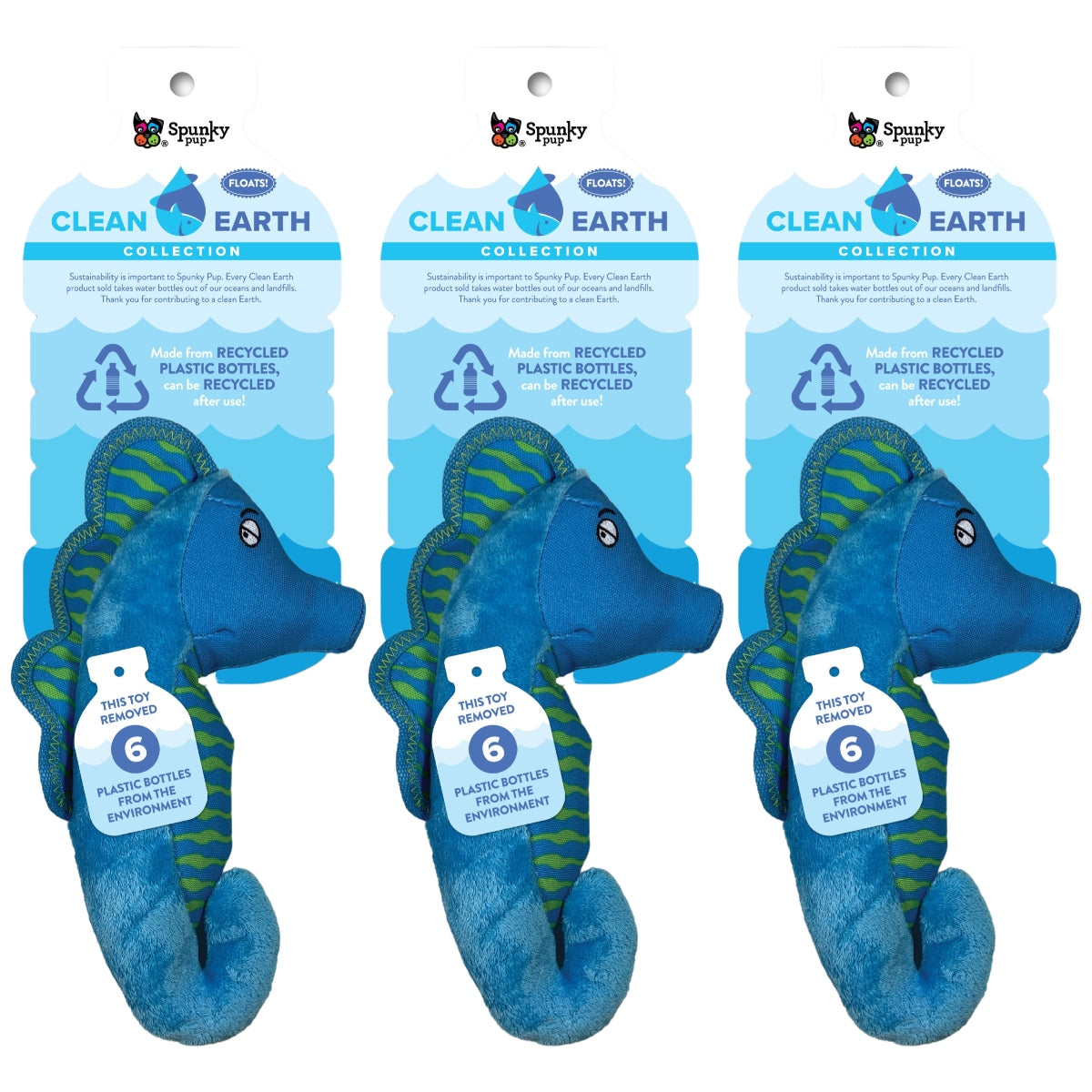 Give your pup a sustainable and ocean-inspired playtime with the Clean Earth Recycled Plush Toy: Seahorse (Small). Crafted from 100% recycled plastic bottles, this adorable plush helps reduce plastic waste while providing a soft, durable, and engaging experience for your furry friend. Its small size and lightweight design make it perfect for small dogs and puppies who love to fetch, tug, and cuddle.