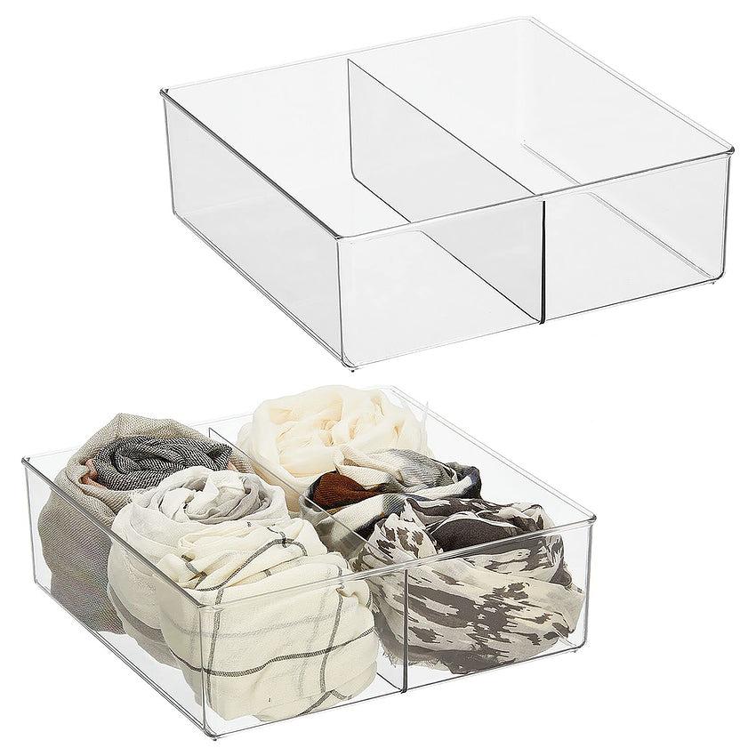 Optimize your closet organization with this 4-Pack Divided Closet In-Drawer Bin. Designed to neatly arrange small accessories, undergarments, or personal items, these bins feature compartments that help keep everything in its place. The transparent design ensures easy visibility and access to your essentials.