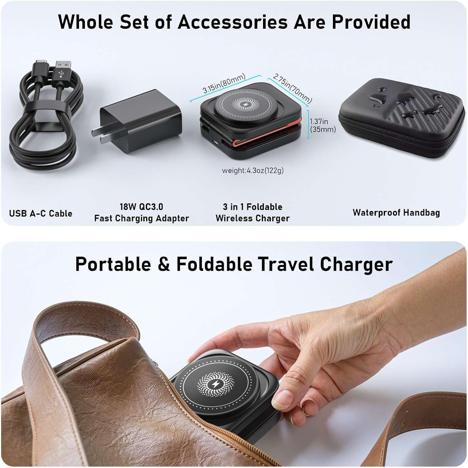 • 3-in-1 Charging Solution: Charge your phone (15W), AirPods (5W), and Apple Watch (2.5W) simultaneously with ease.