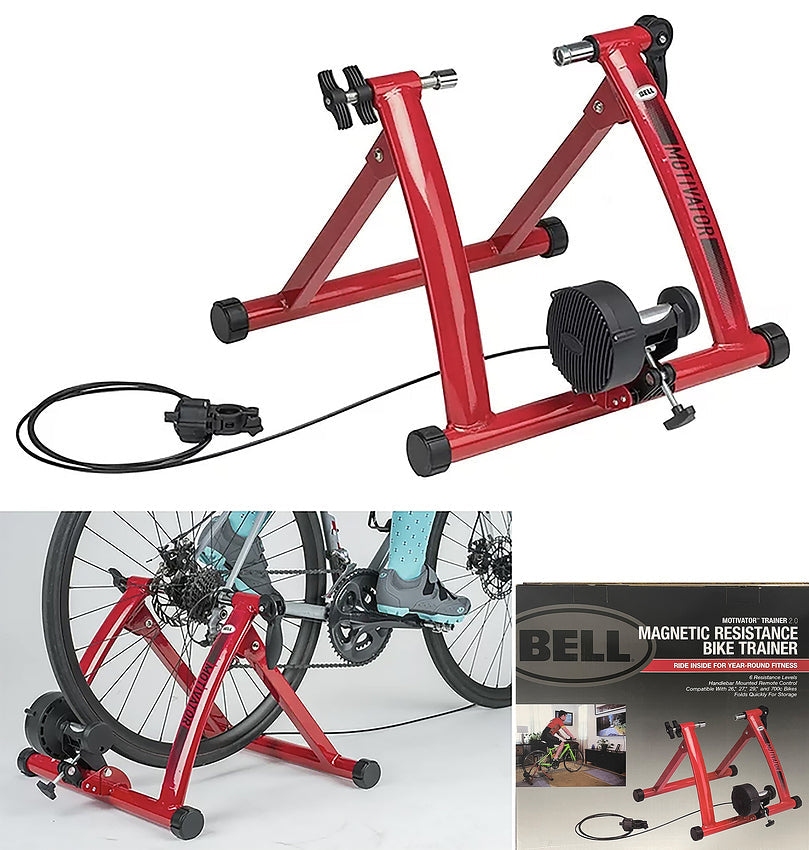 • Turn your road bike into a stationary trainer with the Bell Motivator 2.0 Magnetic Resistance Bike Trainer in Red. Designed for cyclists who want to maintain their fitness or warm up indoors, this durable and compact trainer delivers a smooth and quiet ride.